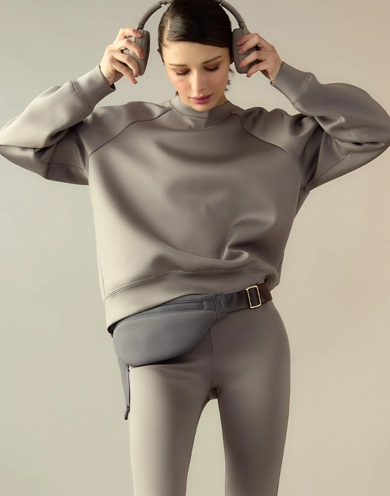 Fit: model is 5’10” and wears a size S. “}”>Fabric content: 86% polyester, 14% spandex - <span data-mce-fragment="1" data-sheets-value="{"1":2,"2":"Bonded Oversized Sweatshirt Pullover
