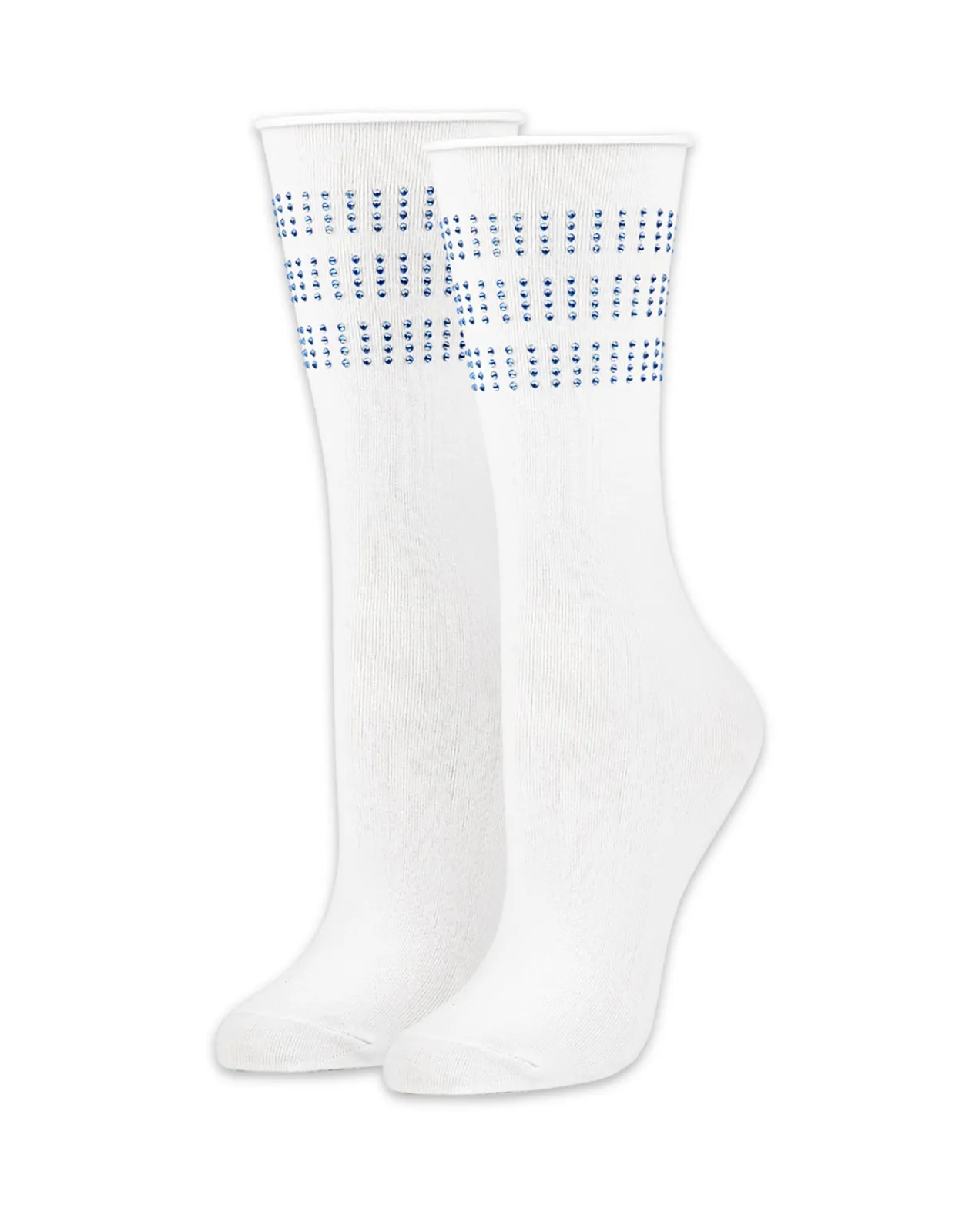 White socks with blue crystals. Pair with your favorite sneakers or heels!