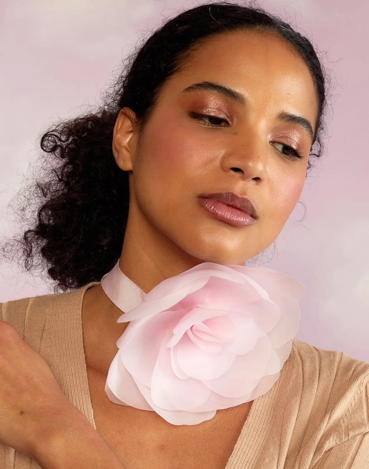 Organza flower can be worn as a belt, hair accessory, or necklace.