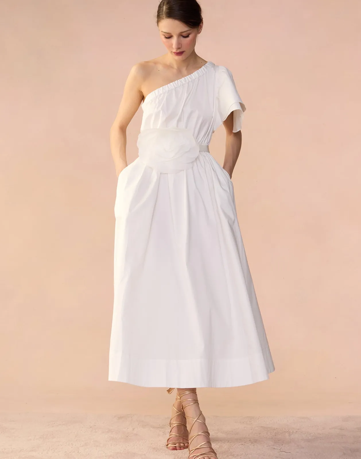 Asymmetrical one shoulder cotton dress.