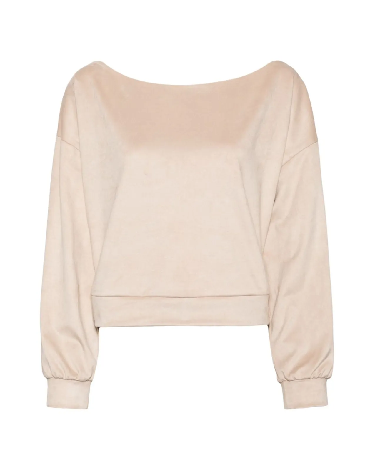Stone ivory ultrasuede wide-neck pullover