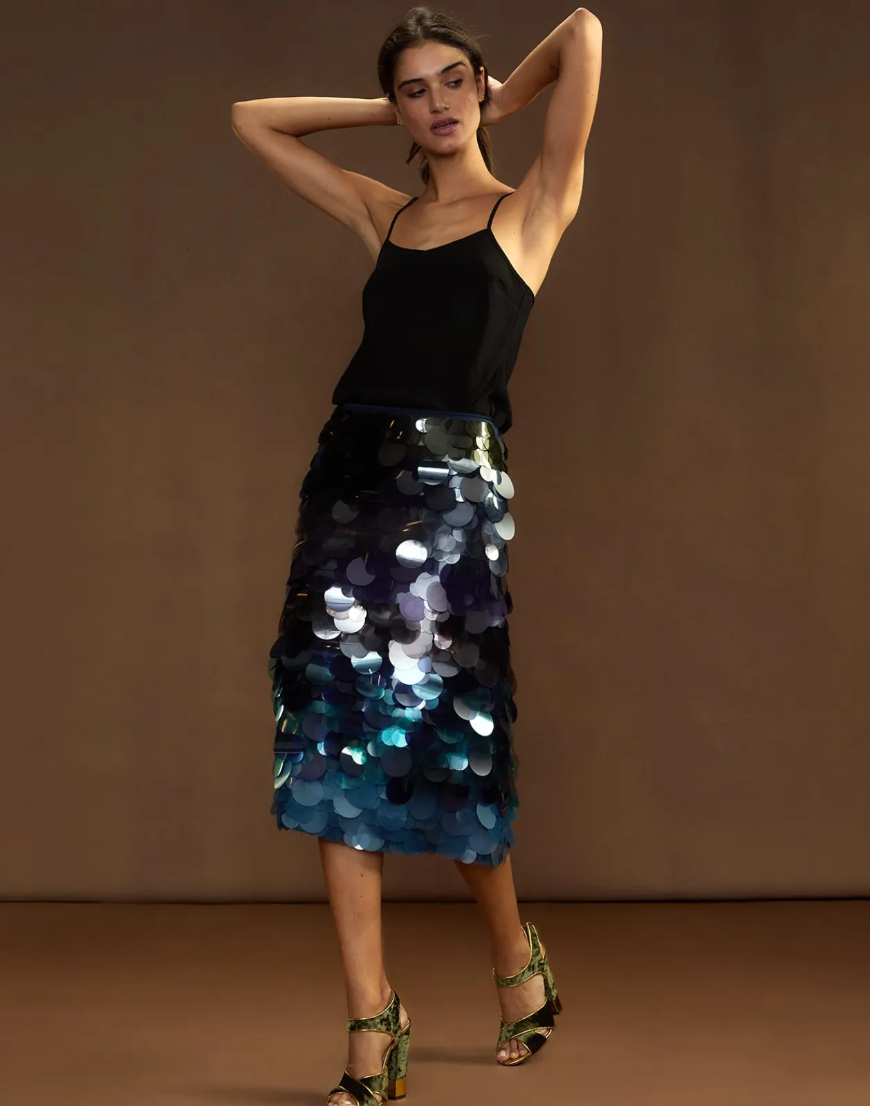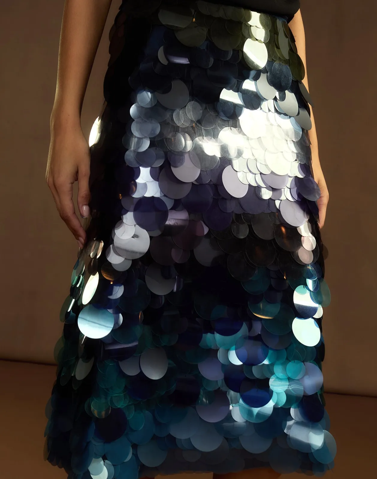 Iridescent sequin skirt with ombre cascading circle paillettes