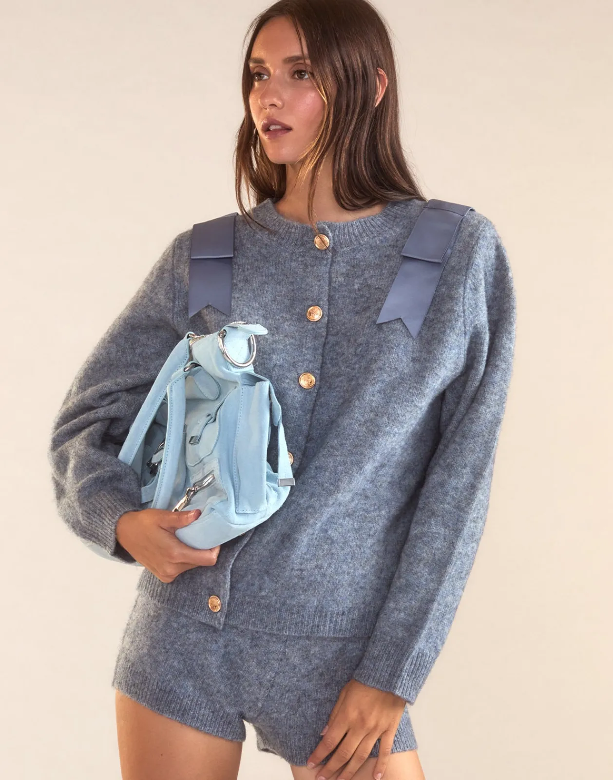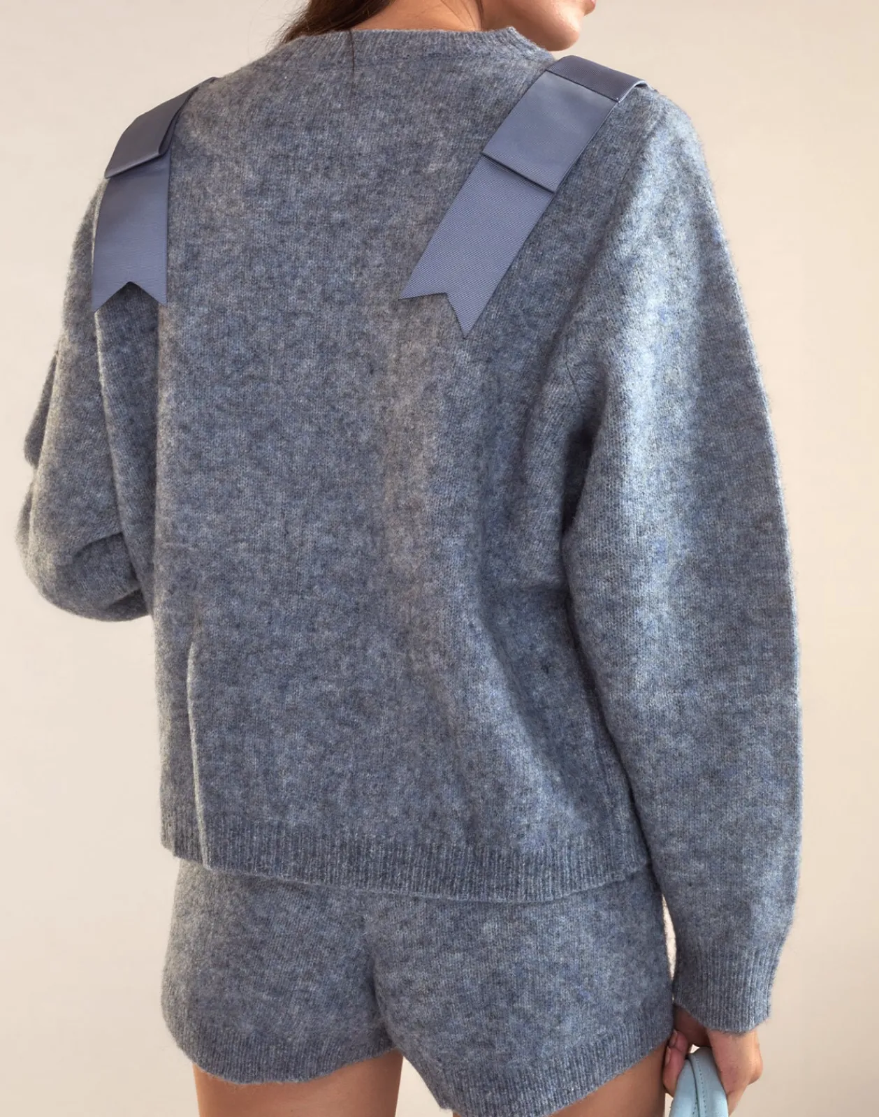 - Denim blue wool knit shorts