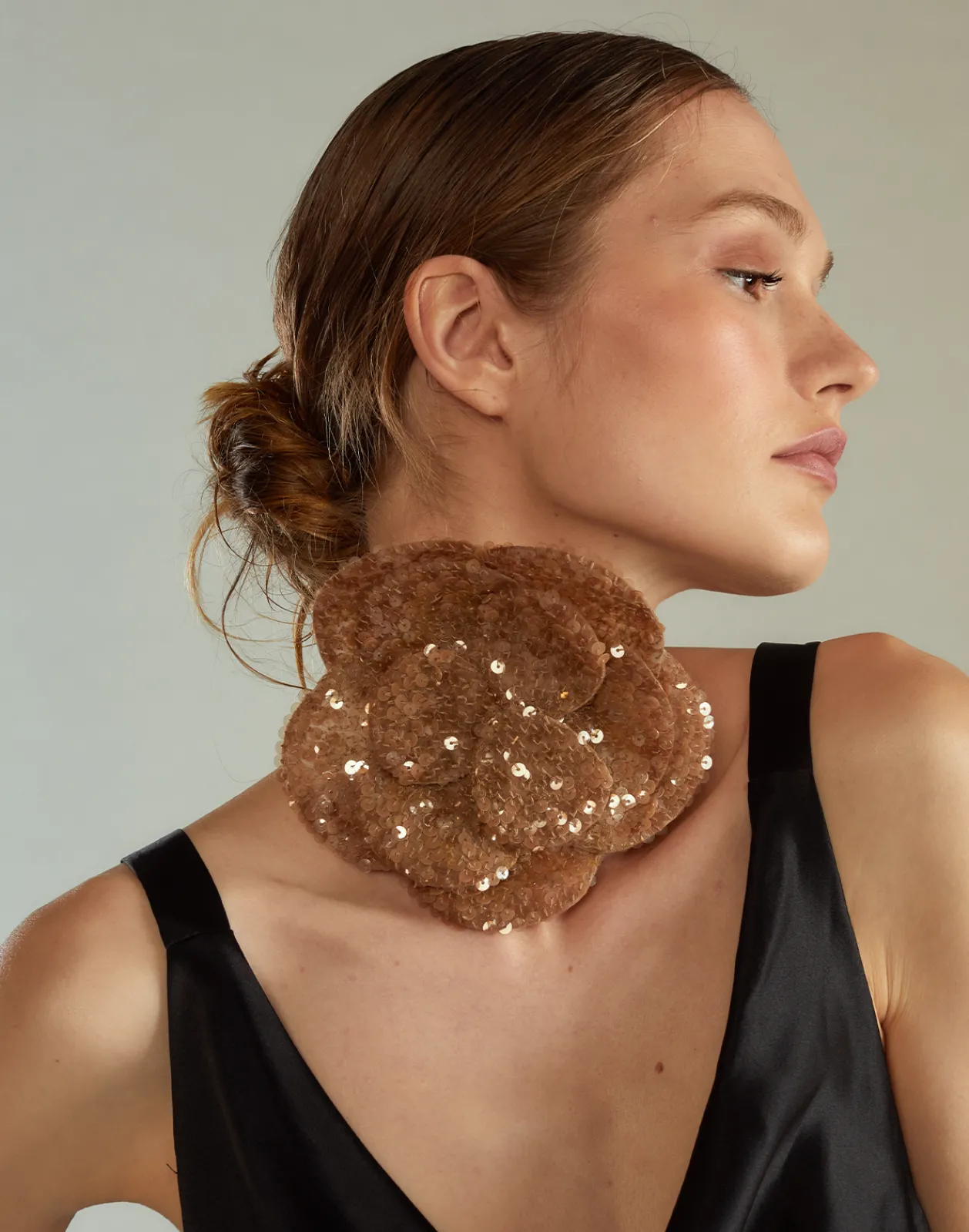 Sequin flower can be worn as a belt, hair accessory, or necklace.