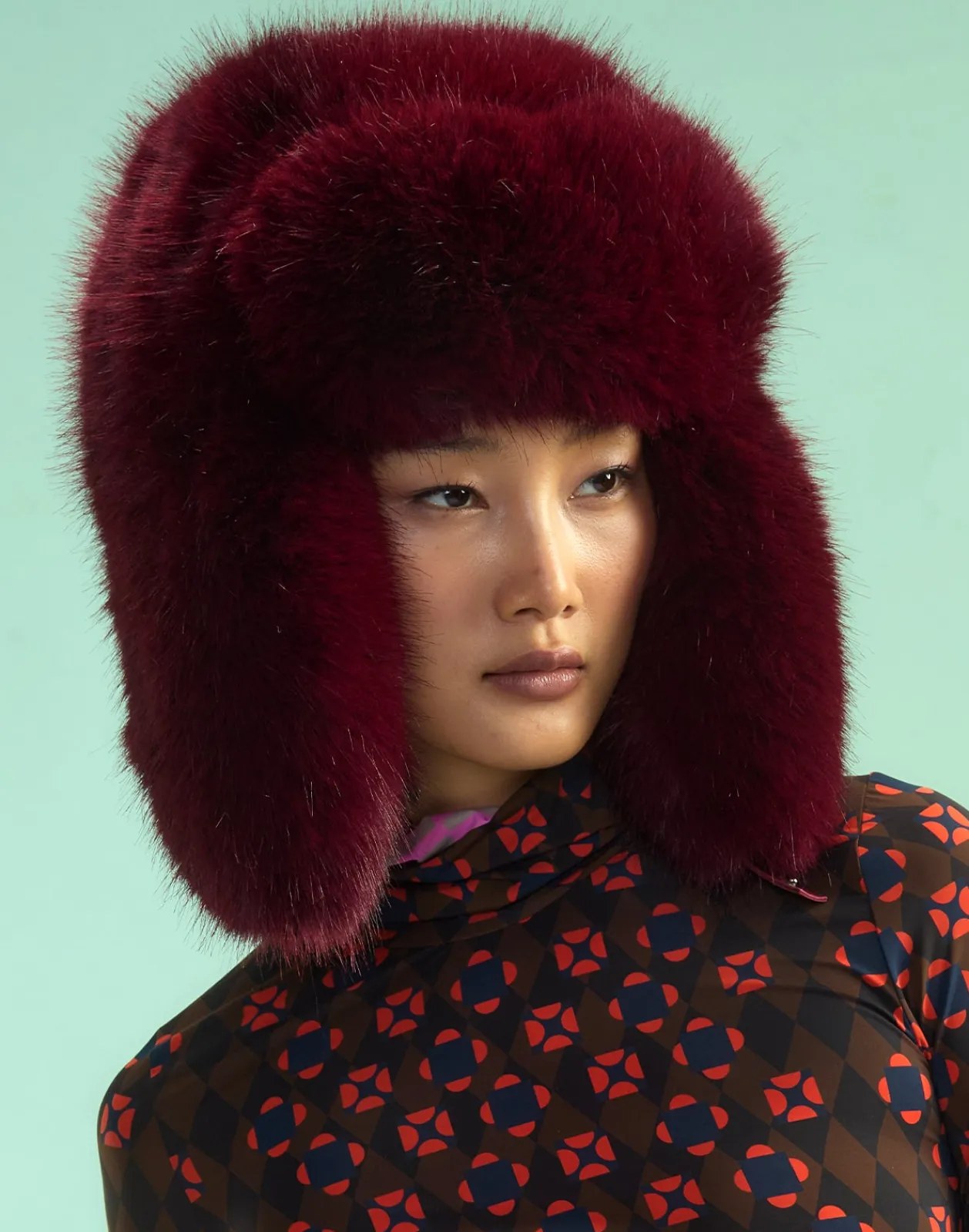 The Snow Bunny Faux Fur Trapper Hat Plush faux fur Burgundy Care: hand wash and hang to dryContent: 100% polyester