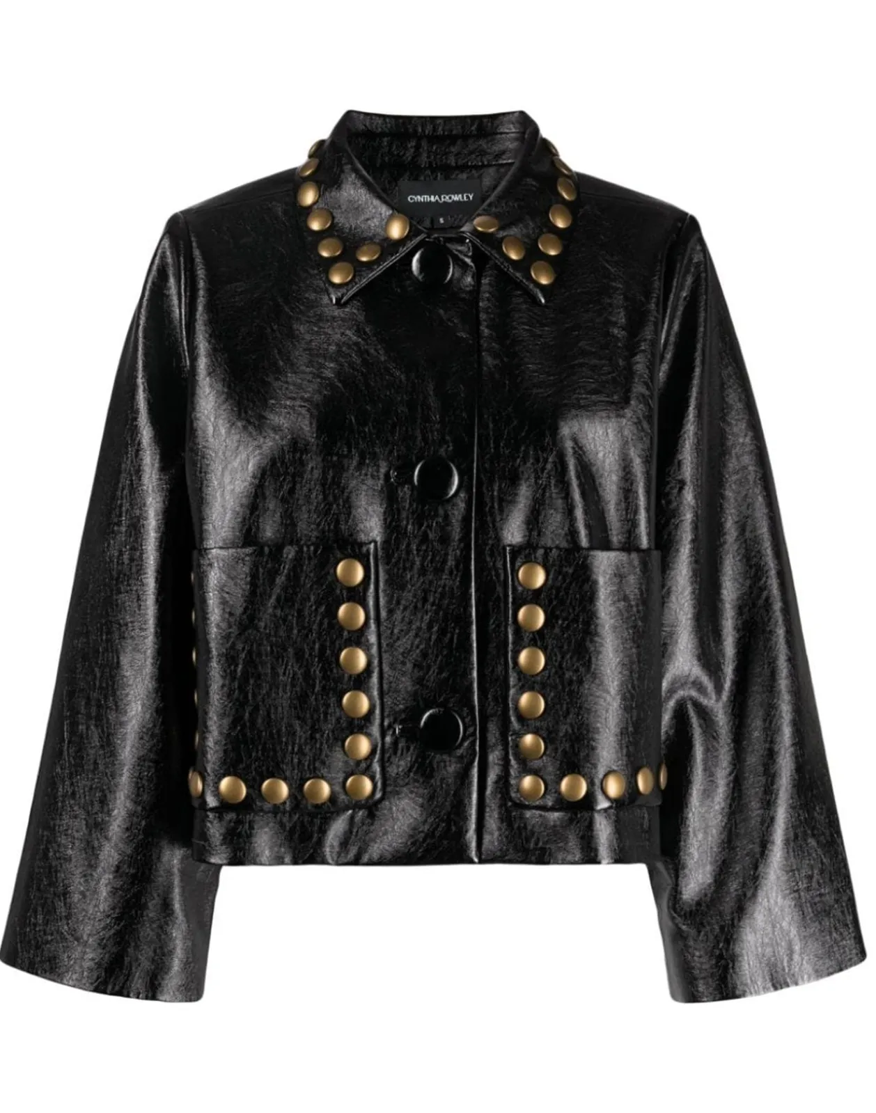 Black patent vegan leather studded jacket.