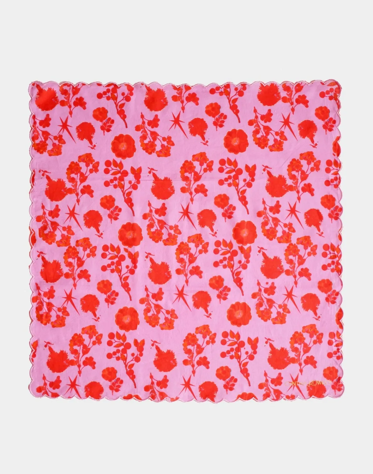 Printed cotton dinner napkins with scallop embroidered edge. Set of four 20″ by 20″ Embroidered edge detail100% cotto…