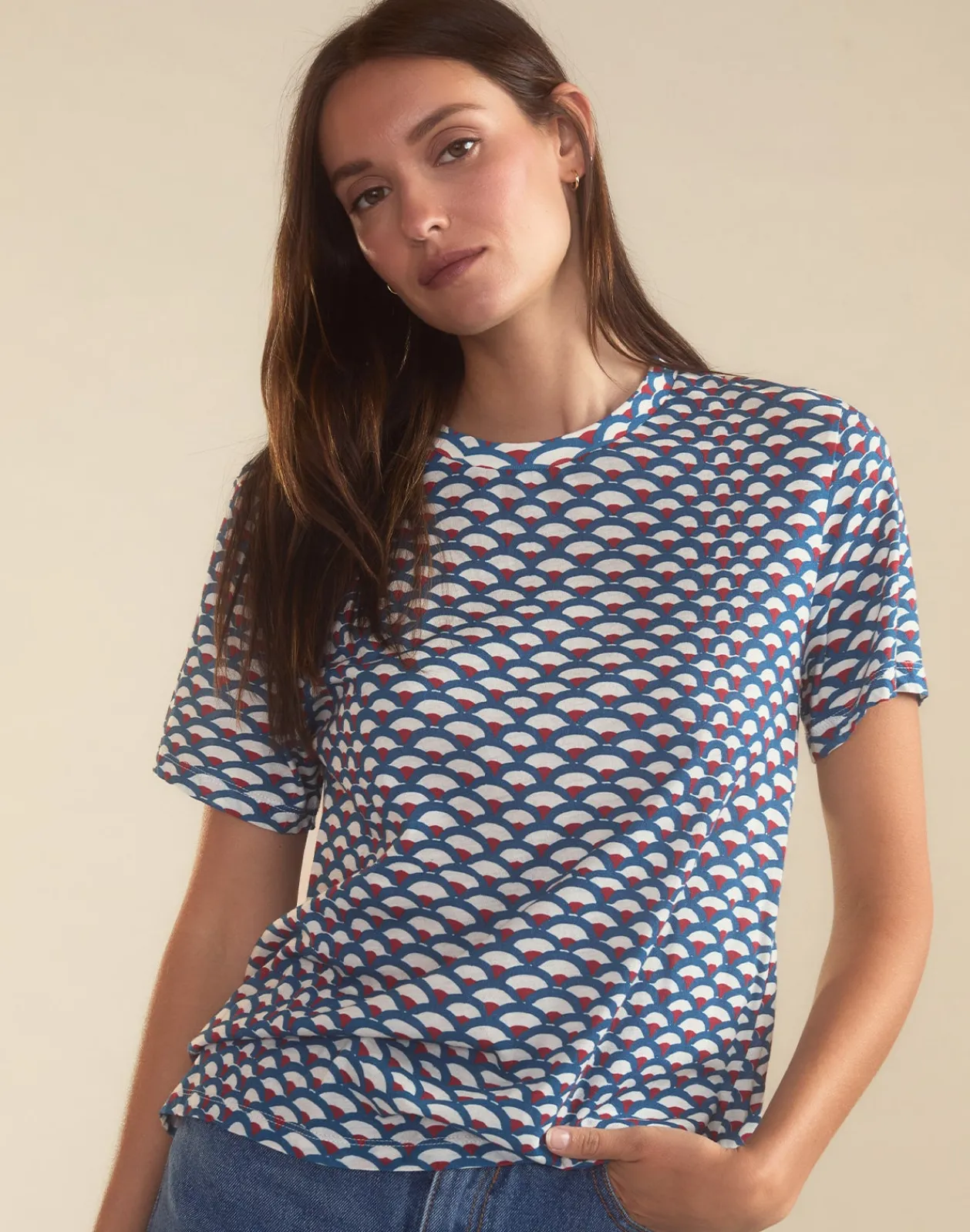 One for every day of the week!Blue, red, and whiteAbstract art deco fan printRegular fitSoft-spun cotton, soft to touc…