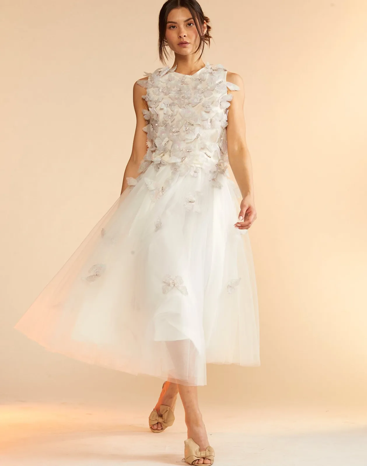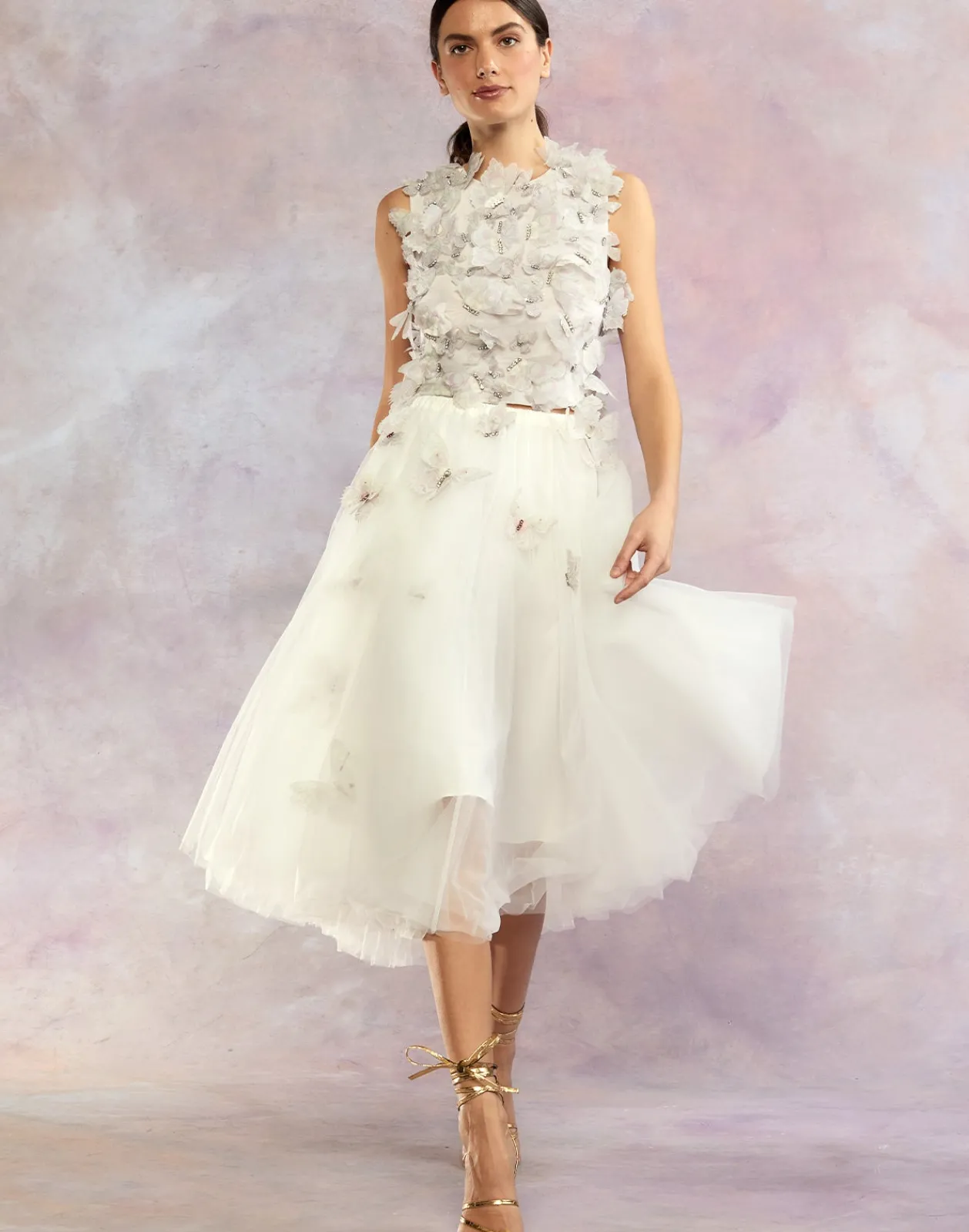 Ballerina style white tulle skirt with cascading butterflies.