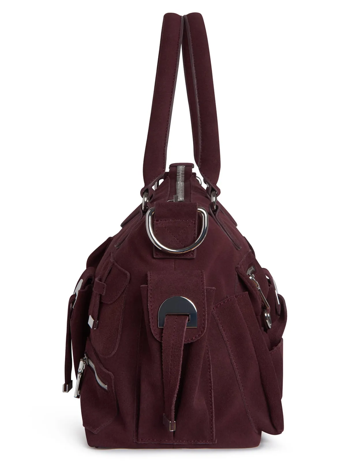 Oxblood Suede Cargo Pocket Shoulder Bag