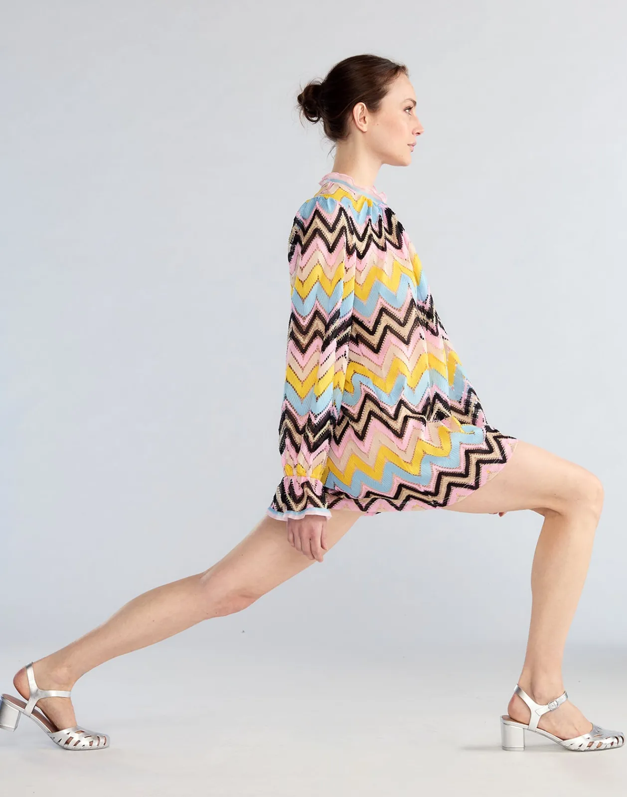 Silver metallic heeled mary janes.
