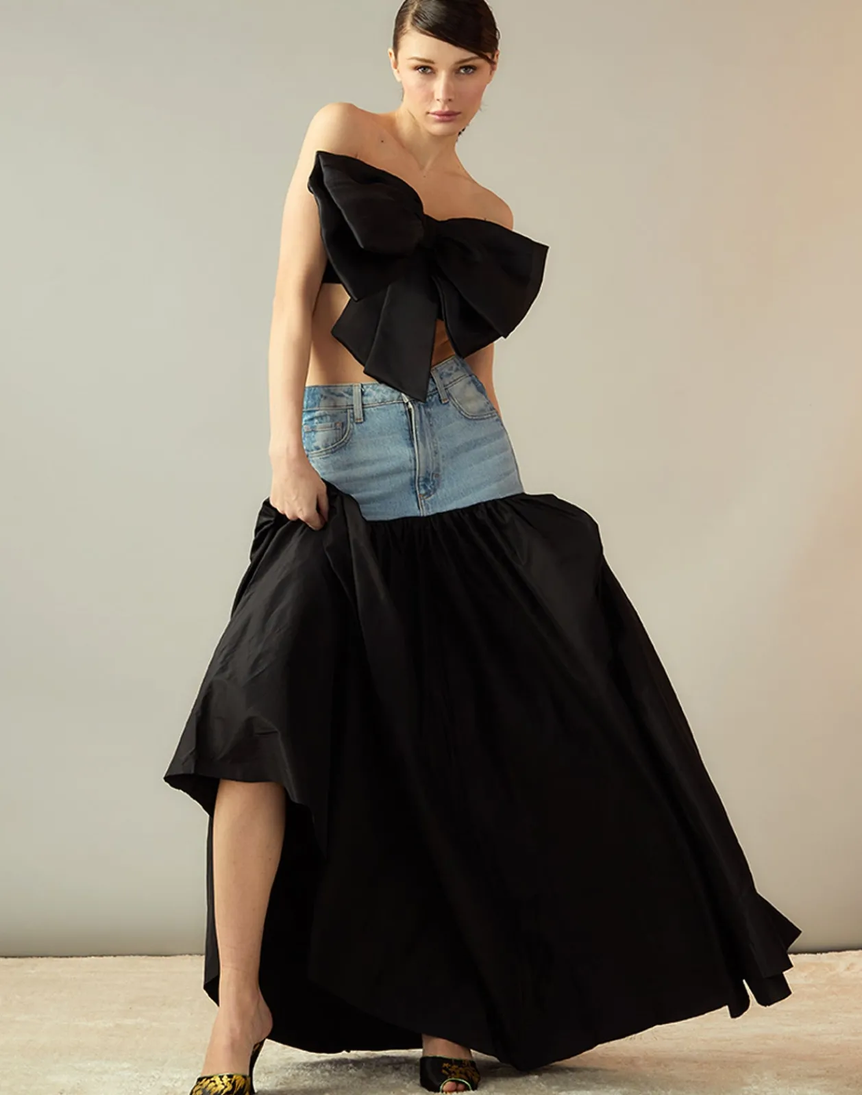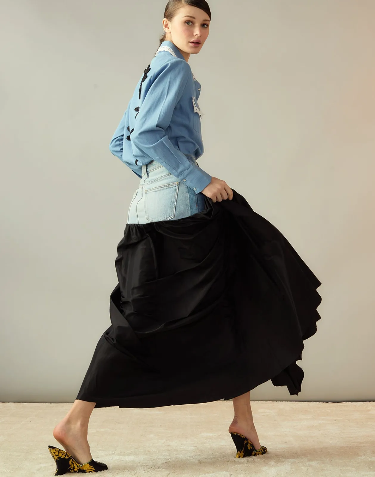 Deconstructed Denim Taffeta Skirt