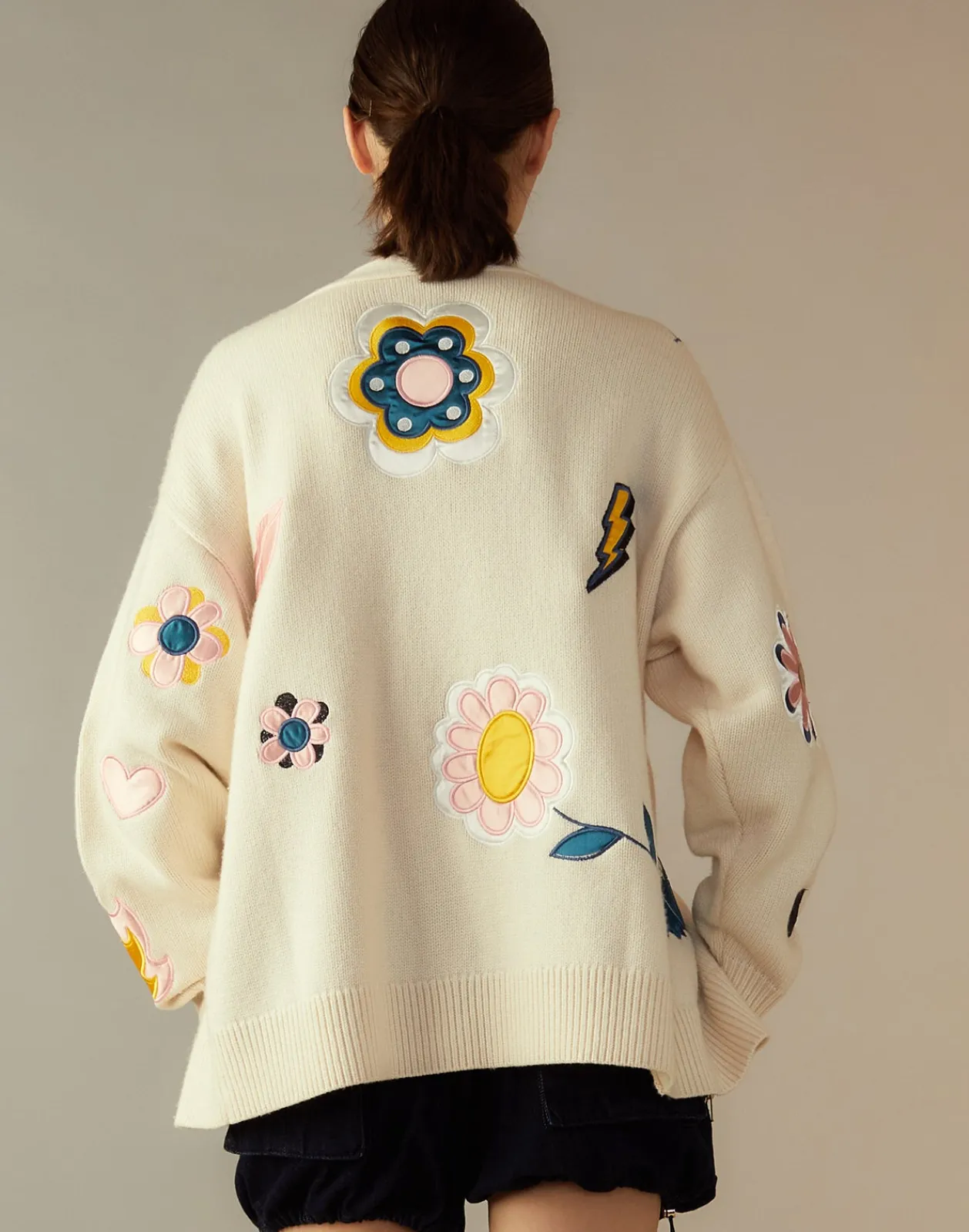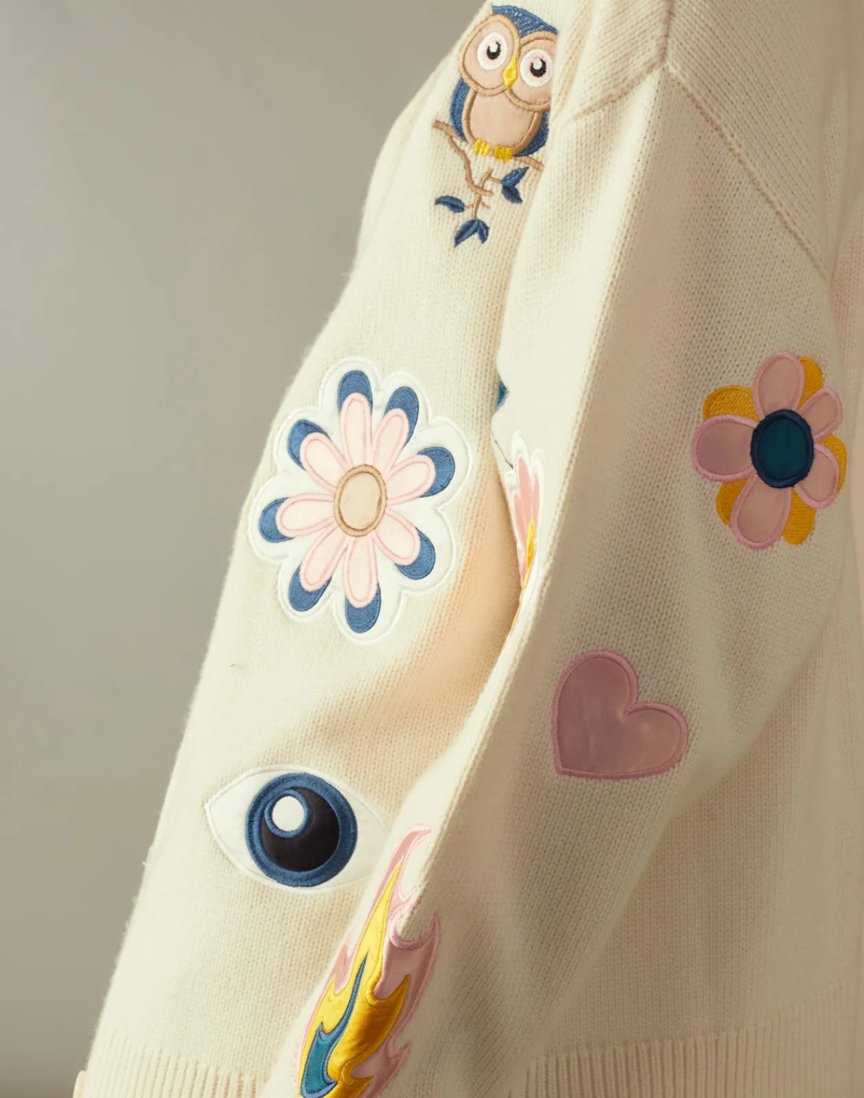 - Bold Appliqués: Features a variety of playful and colorful patches