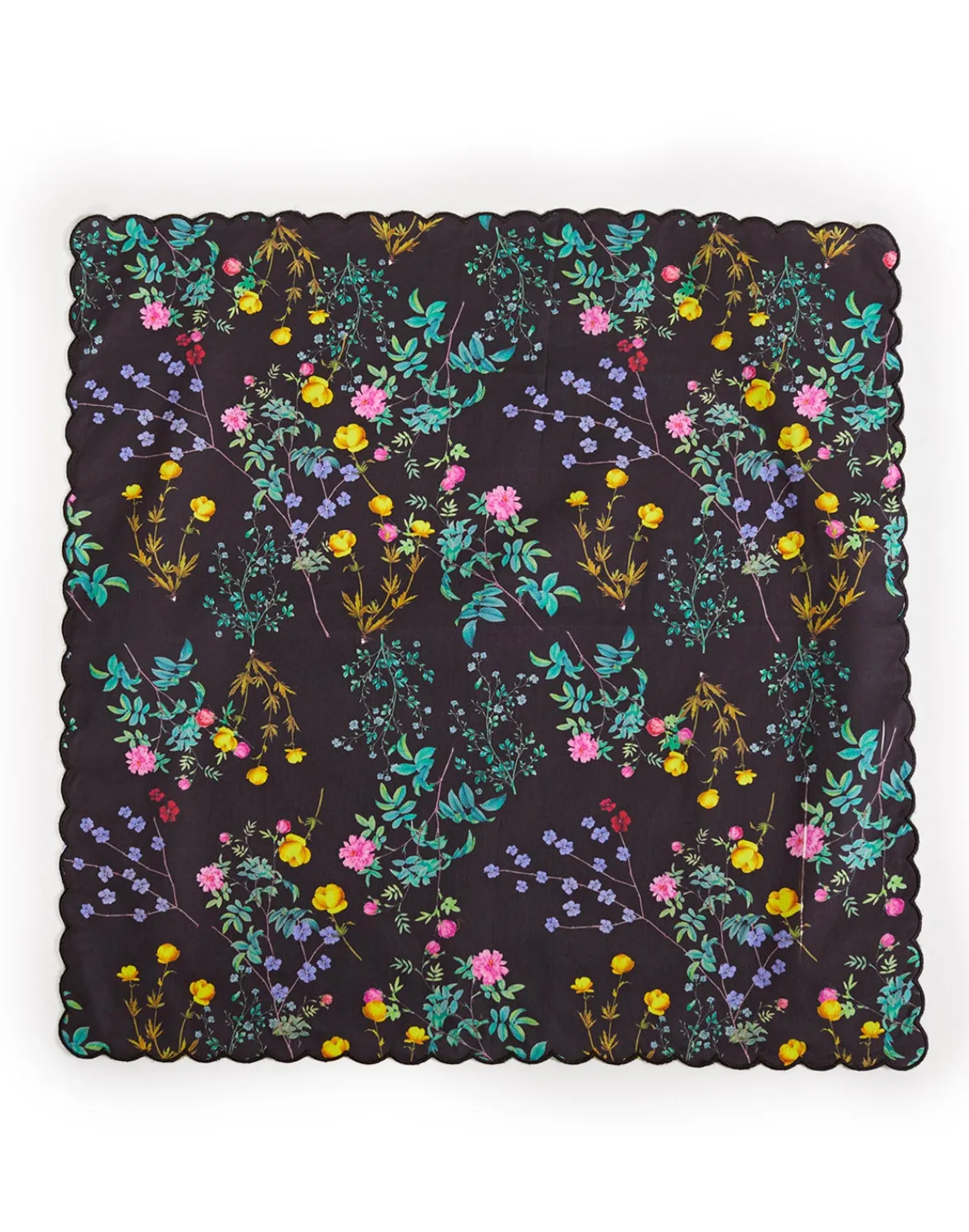 Printed cotton dinner napkins with scallop embroidered edge. Set of four 20″ by 20″ Embroidered edge detail100% cotto…