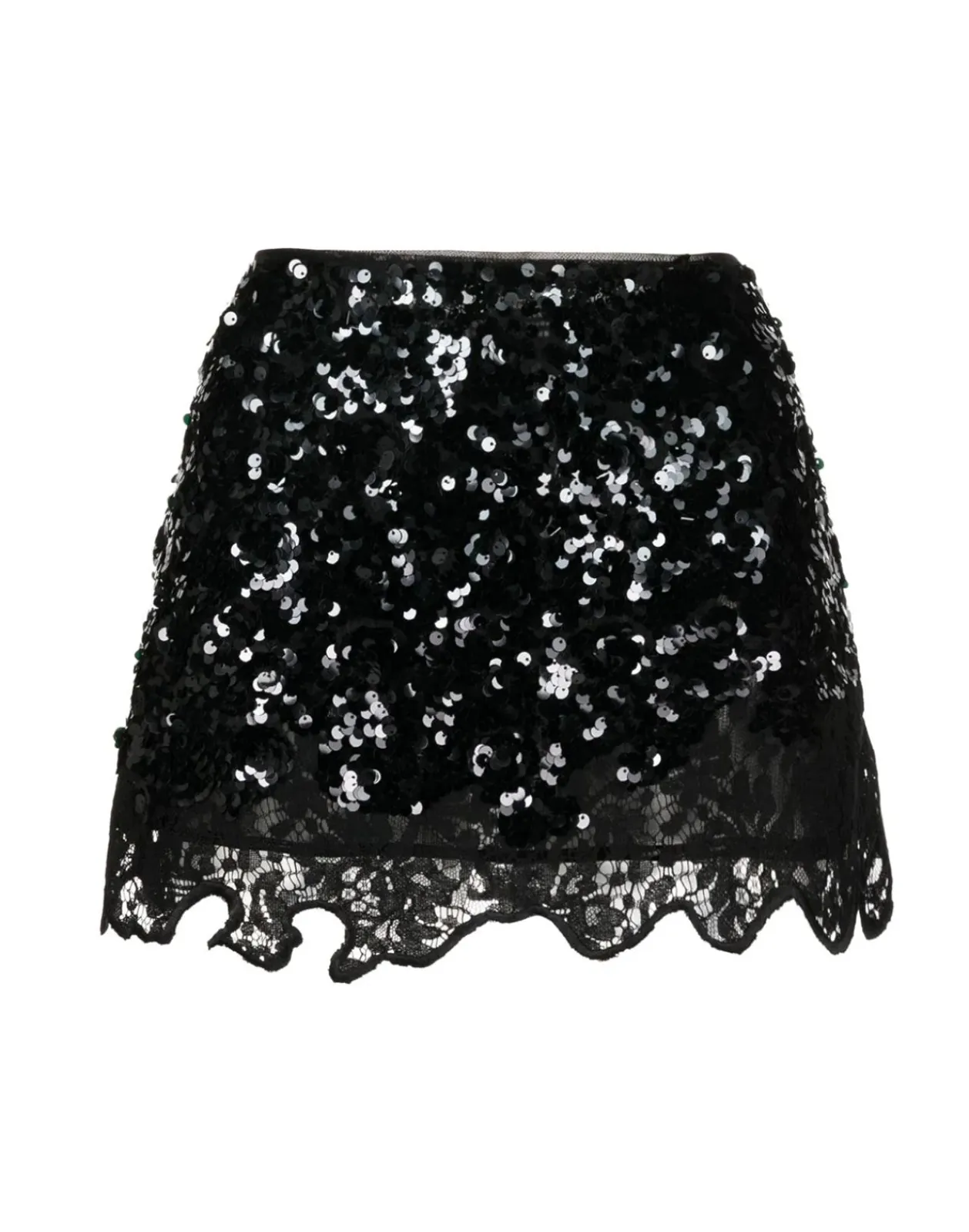 Black sequined lace skirt.