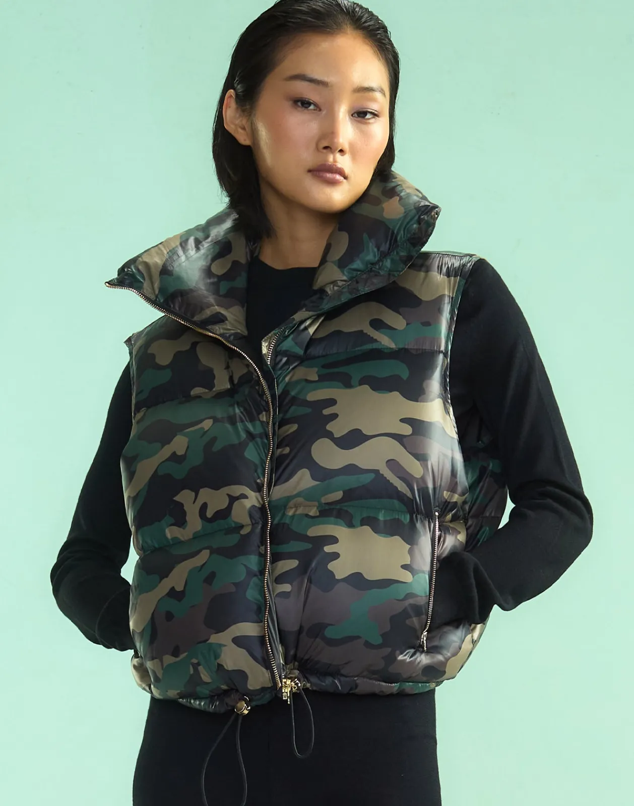 Camouflage down feather puffer vest.