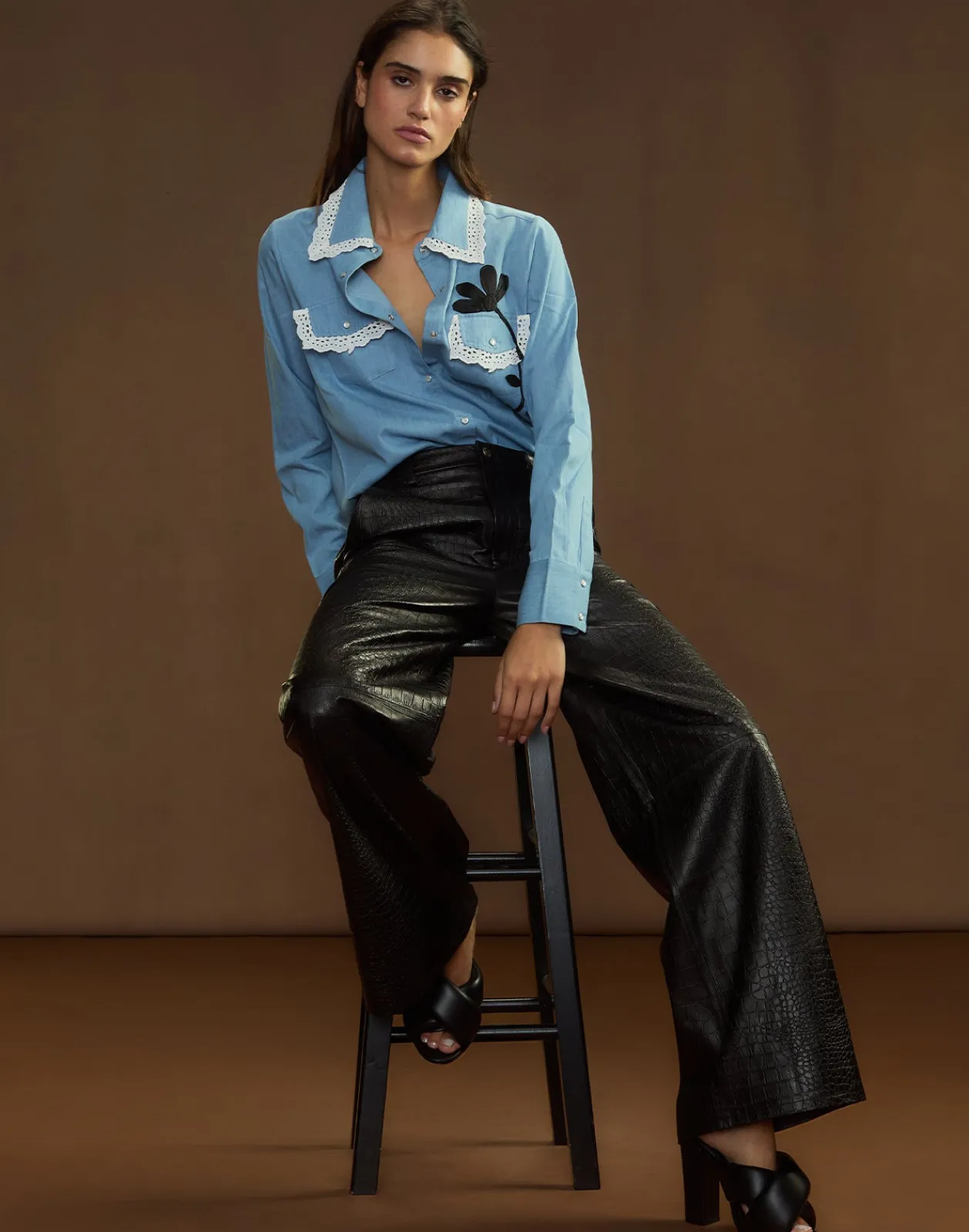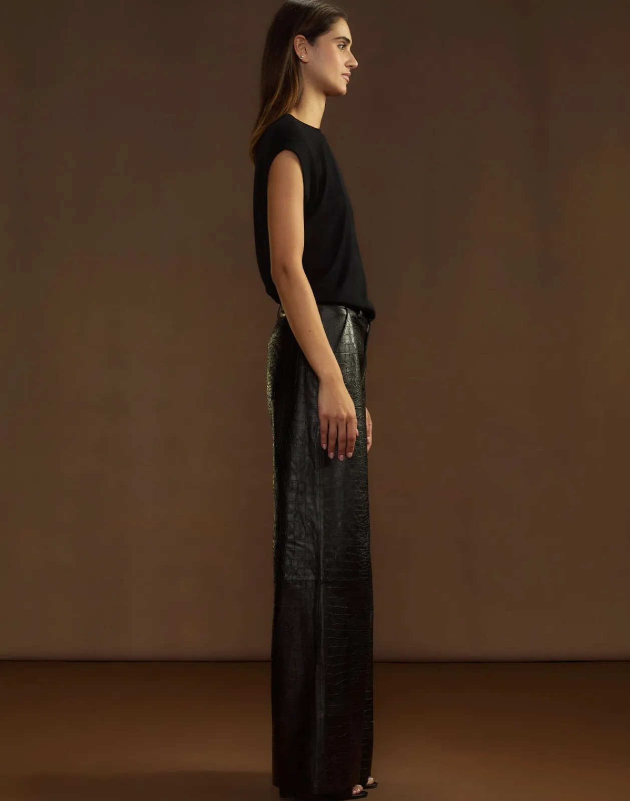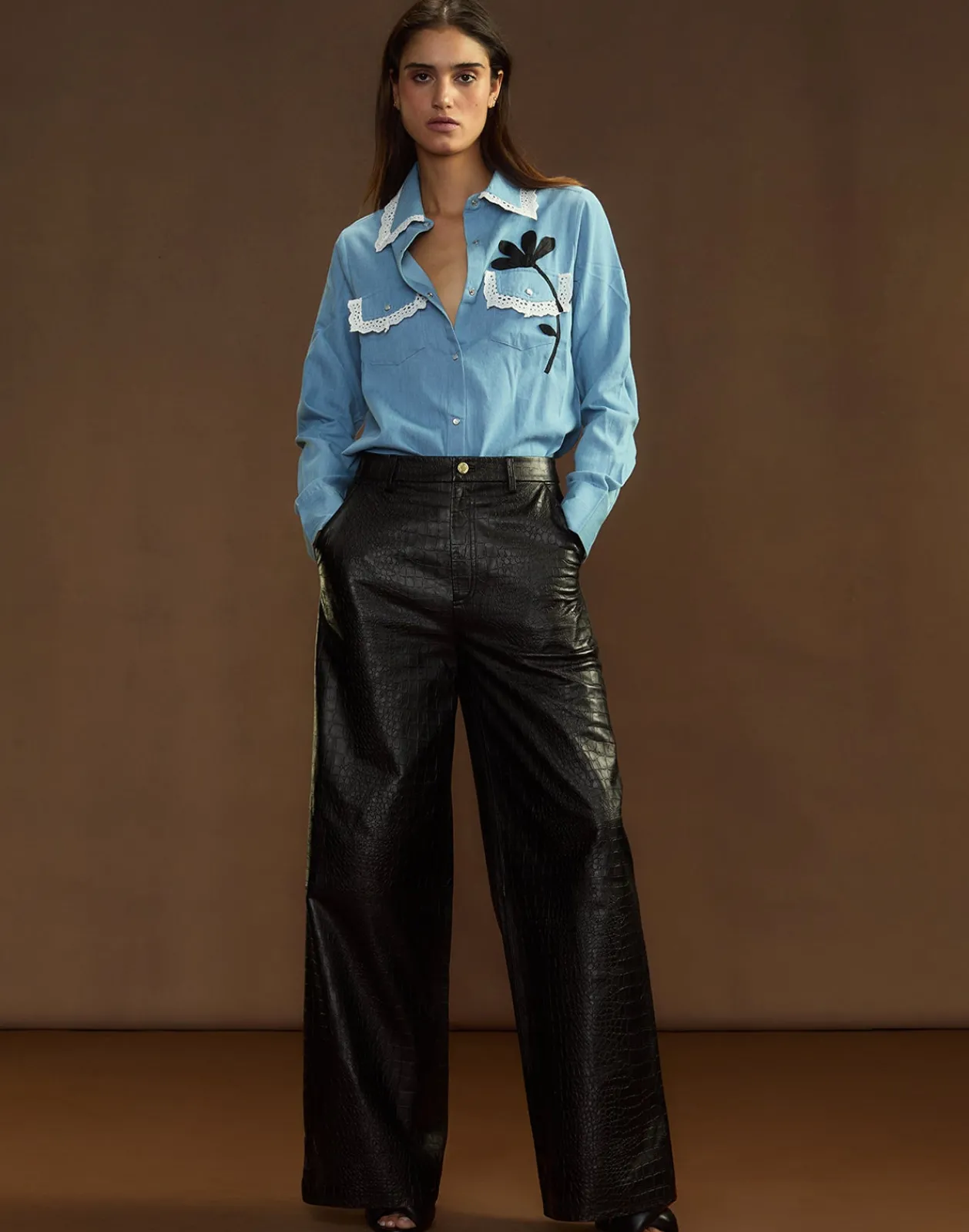 Embossed leather wide-leg trousers