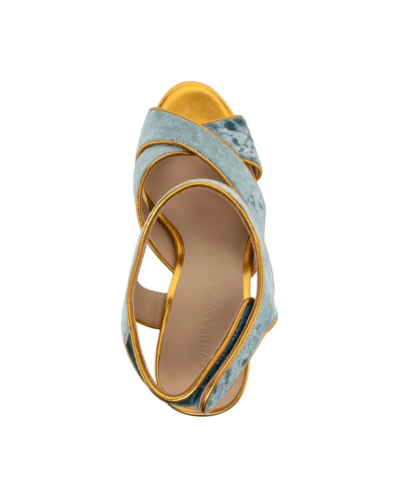 The perfect date night heel! Premium leather with soft velvet Gold trim Gold tip toeVelcro closureBlock heel in velve…