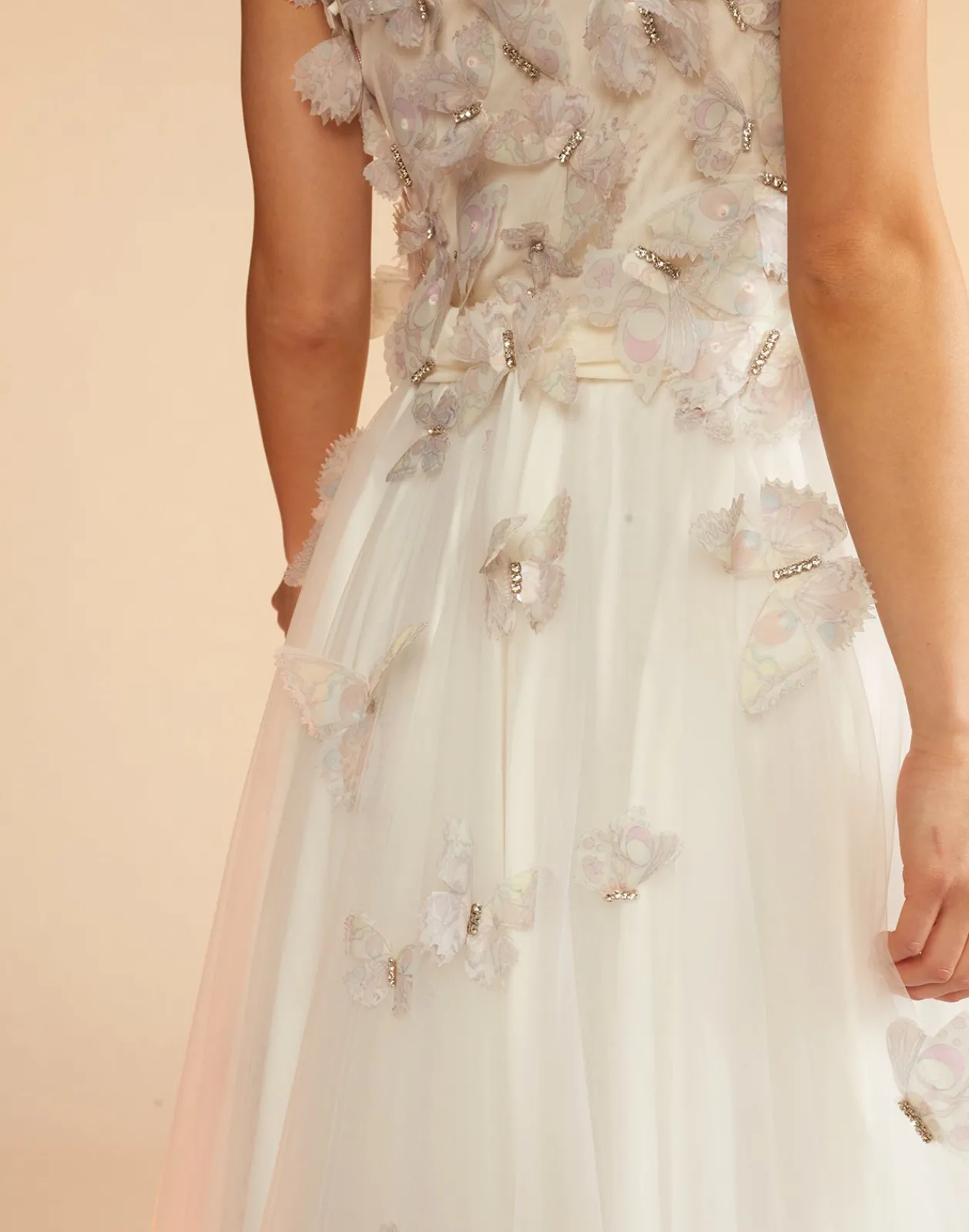 Ballerina style white tulle skirt with cascading butterflies.