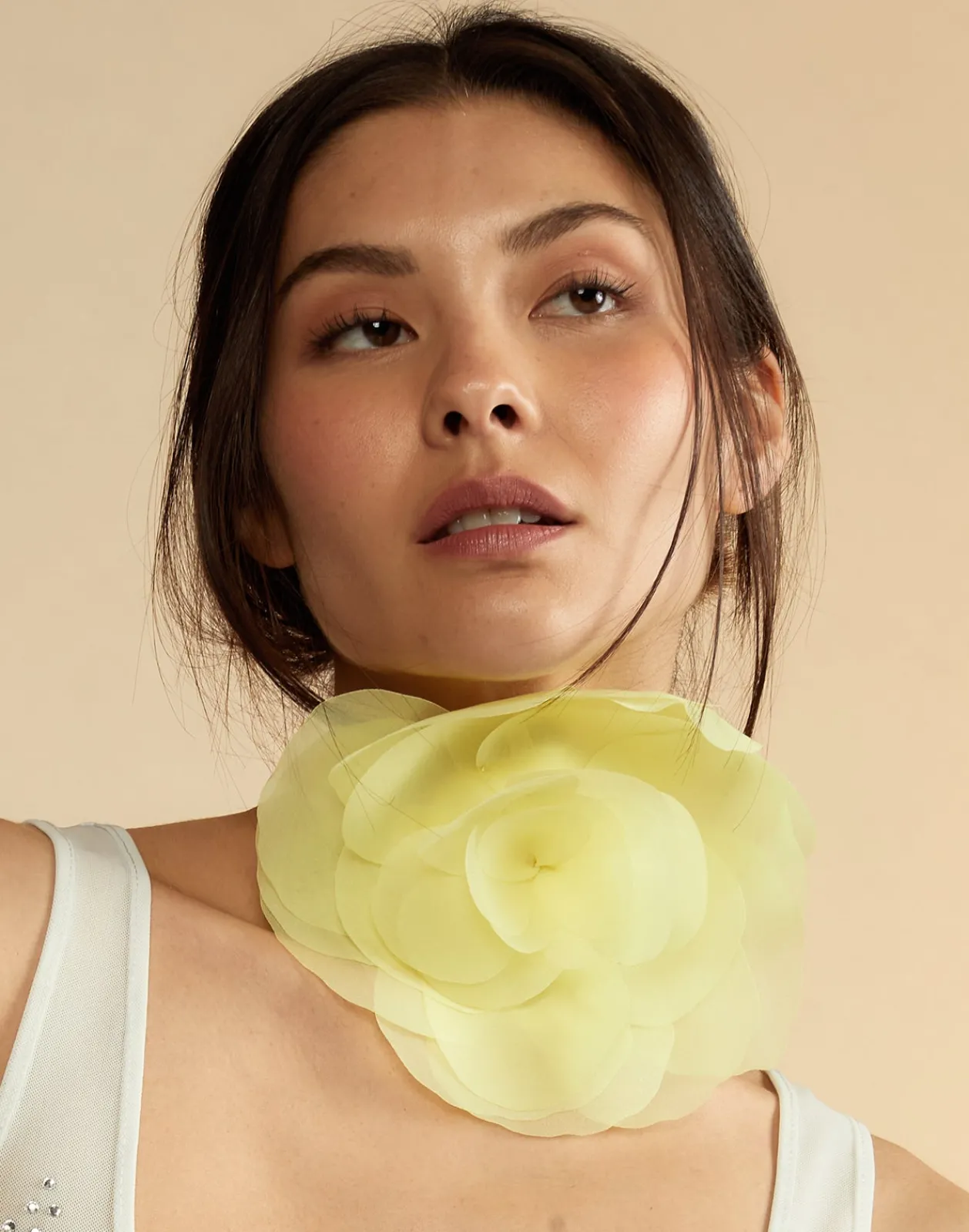 Organza flower can be worn as a belt, hair accessory, or necklace.