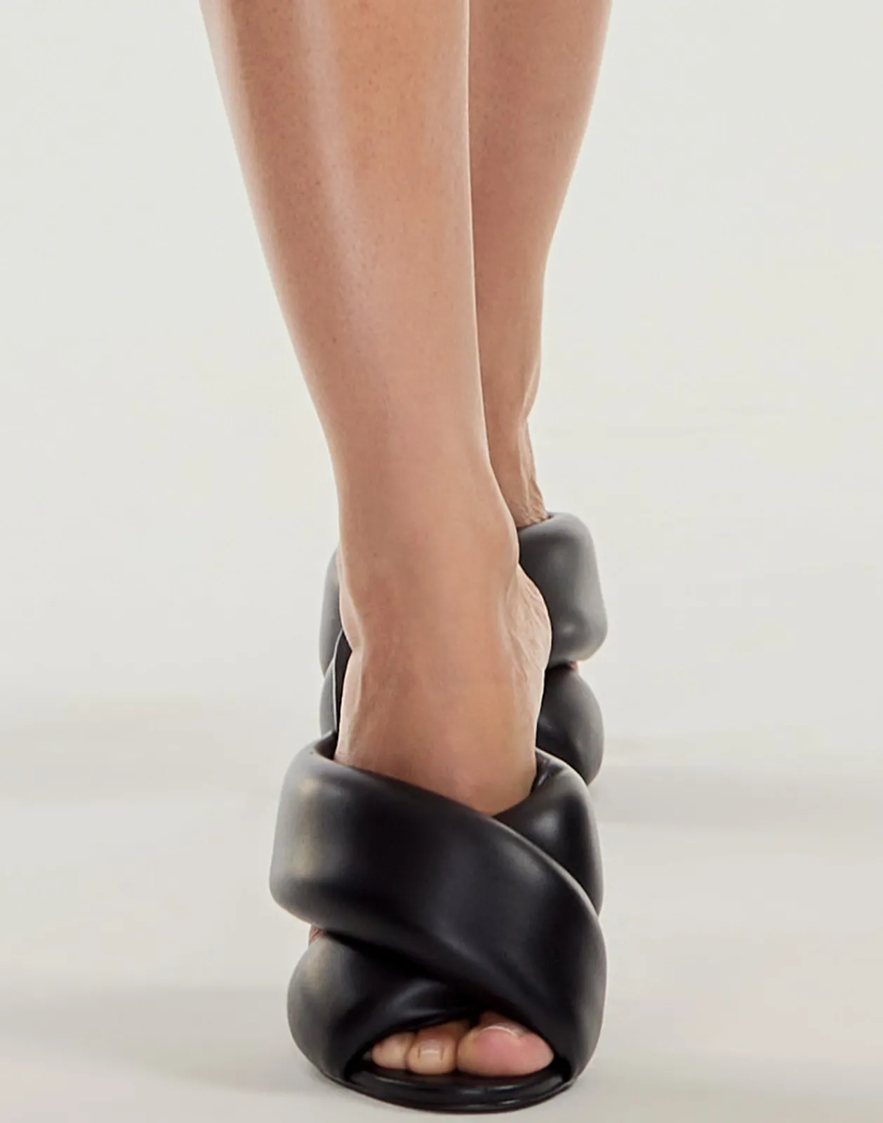 Crossed padded vegan leather mules